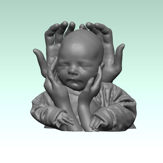 Van handen en gezichten kunnen we mooie beeldjes maken. Wel betekent dat werken met veel details, waardoor factoren als huidtype en goed stil zitten een groter effect hebben op het eindresultaat. Ook zijn sieraden door hun reflectie lastig te scannen. Wel kunnen we deze er eventueel via een foto later in bewerken. Weet ook dat een beeldje geen huidskleur en zeer kleine details kan weergeven en daardoor een eigen uitstraling heeft, anders dan bijvoorbeeld een foto.